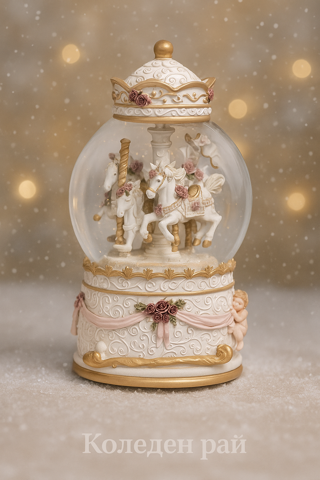 - Тип продукт: Декоративна музикална снежна топка с карусел