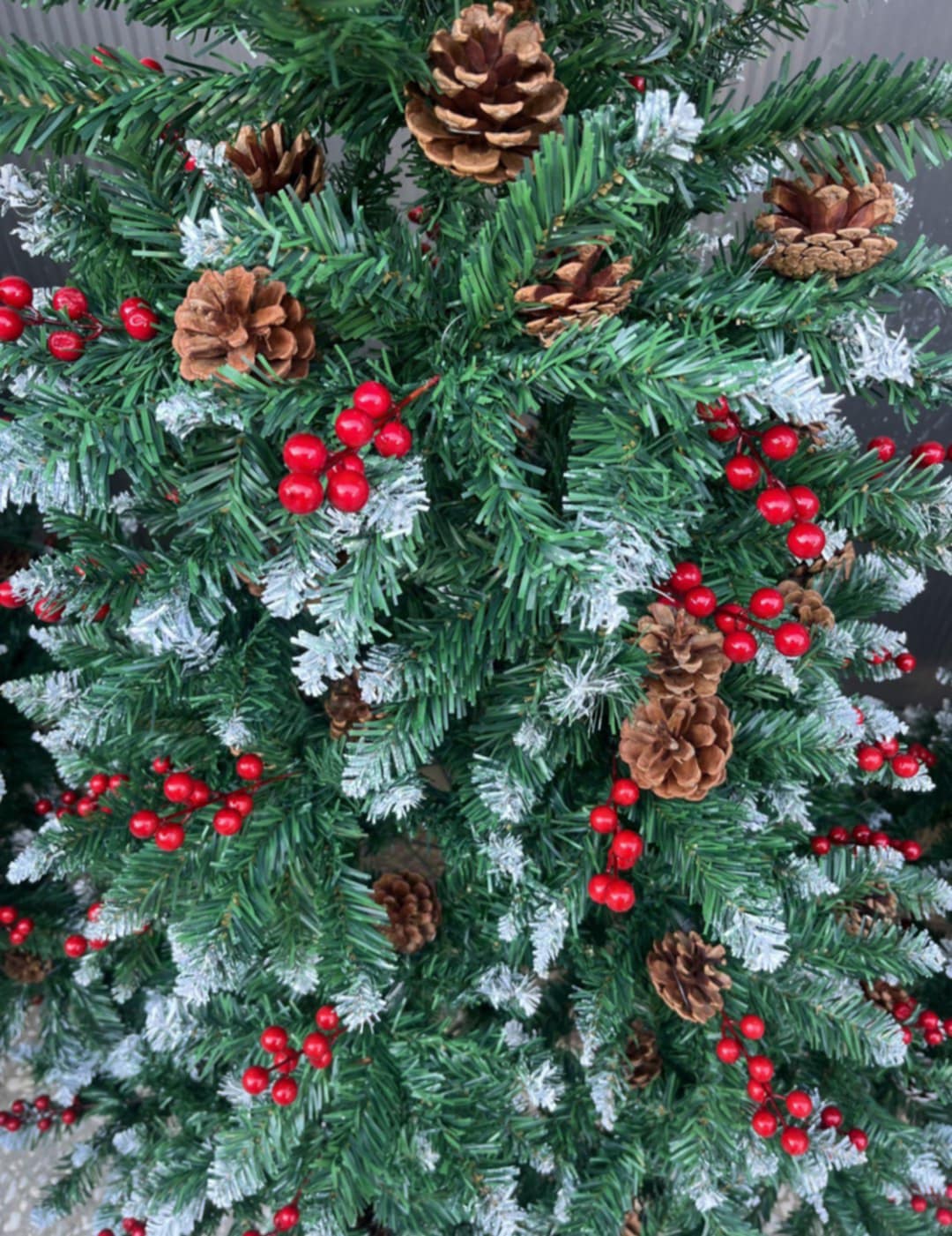 Зелени клони с нежно заснежени върхове, естествени шишарки и декоративни плодчета – Горска магия изглежда така, сякаш току-що си я откъснал от сърцето на зимната гора.