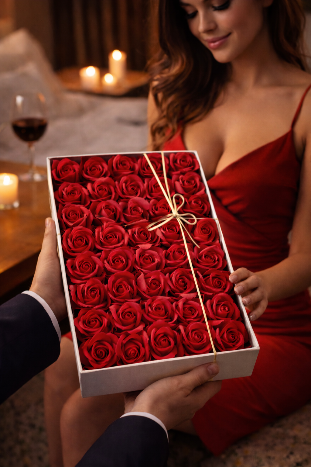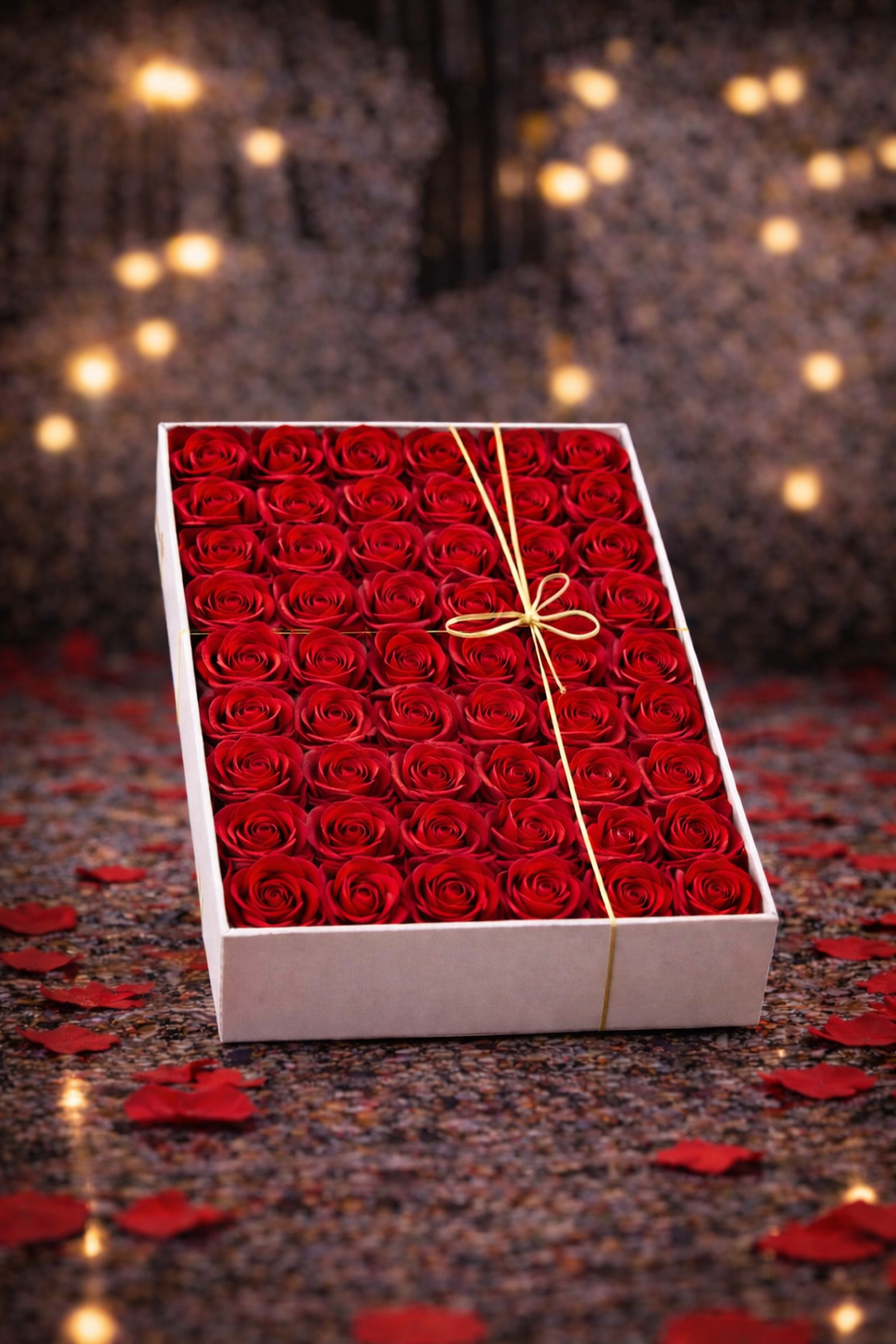 Визуално съвършенство: 48-те рози са подредени толкова плътно, че създават илюзия за безкрайно червено море. Това е дизайн, който излъчва класа и респект.