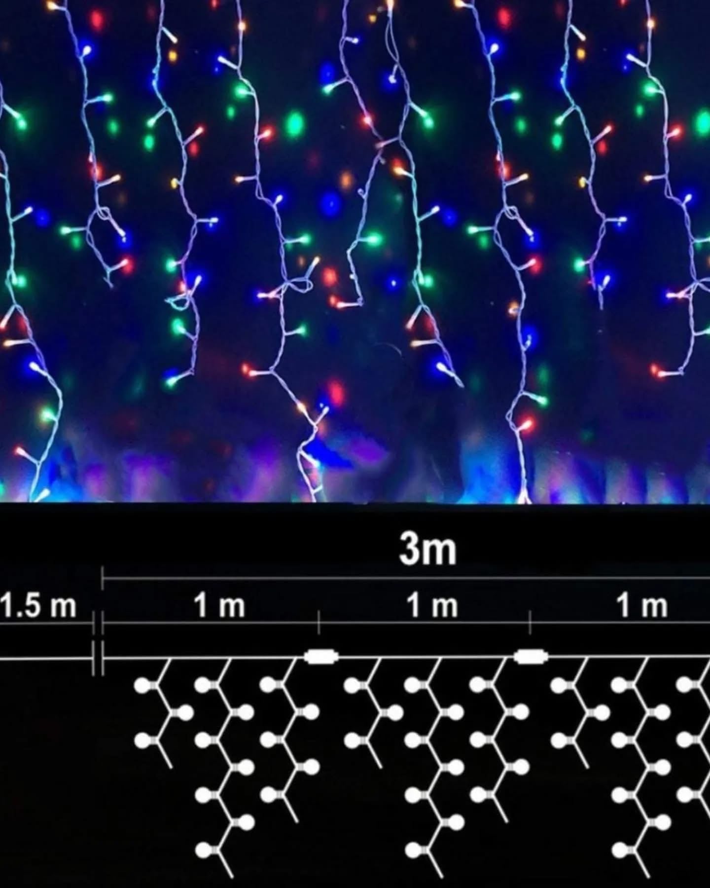 Направи дома си неустоим с LED завеса, създадена да впечатлява. С дължина 3 метра и висулки с ефектно редуване (50, 60 и 70 см), тази декорация превръща всяко пространство в сияен празник.