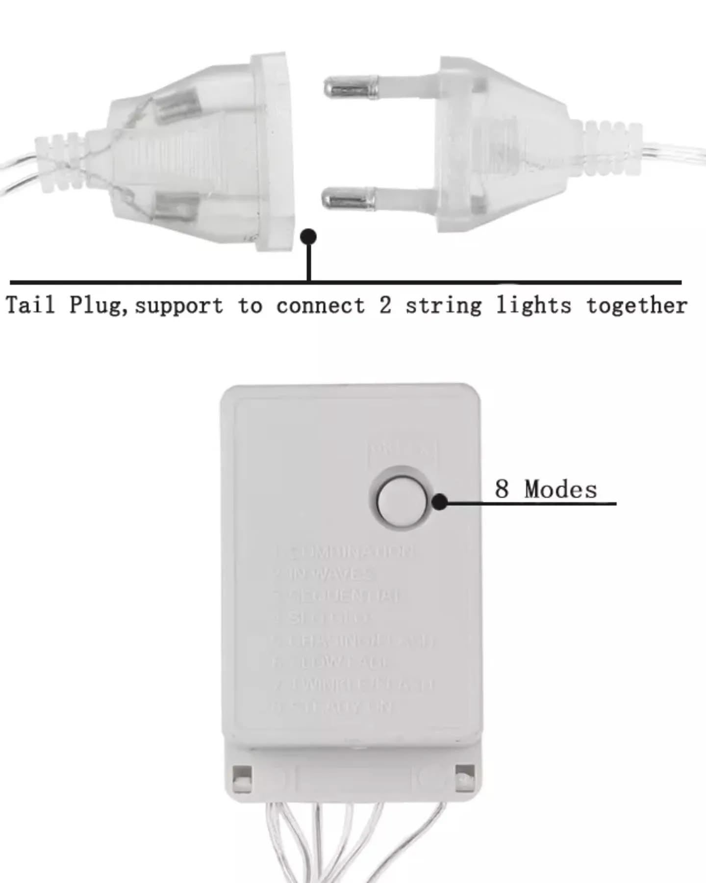 Контролер с 8 светлинни режима ти позволява да създаваш точното настроение – от топла коледна тишина до блестящо празнично шоу.